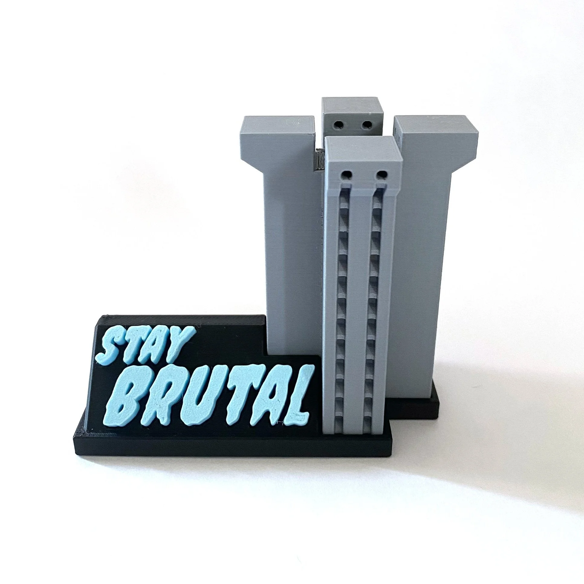 This two piece set comes with a Cement Gray Crosley Tower Action Figure and a black stand. Select the color of your “Stay Brutal” text. Crosley Tower is approximately 3” x 1.75” x 1.75”.